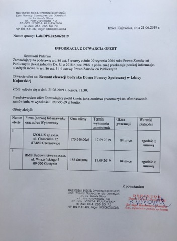 • Miejsce złożenia oferty Dom Pomocy Społecznej w Izbicy Kujawskiej ul. Narutowicza 40, 87-865 Izbica Kujawska. Biuro DPS.